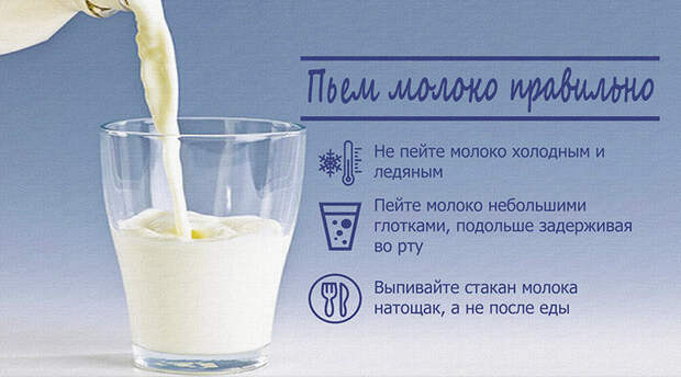 Молоко лучше употреблять утром, с 6 до 9, или вечером, с 18 до 21 часа, горячим или парным как отдельный прием пищи или с сочетающимися продуктами.